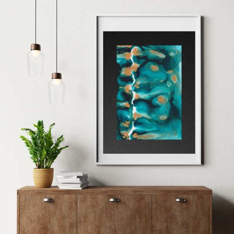 Dimensions: 9"x12" matted to 11"x14" - Medium: Mixed media watercolor, Acrylic and India Ink on mineral paper
